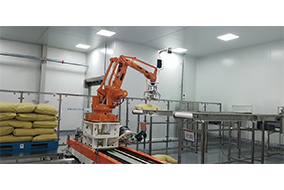 機器人在該項工作的應用,極大的減少了工人勞動強度,增加了設備可靠性、穩定性。通過更換不同的夾具,使其適用不同產品的卸垛/碼垛需求,增加了設備靈活性。